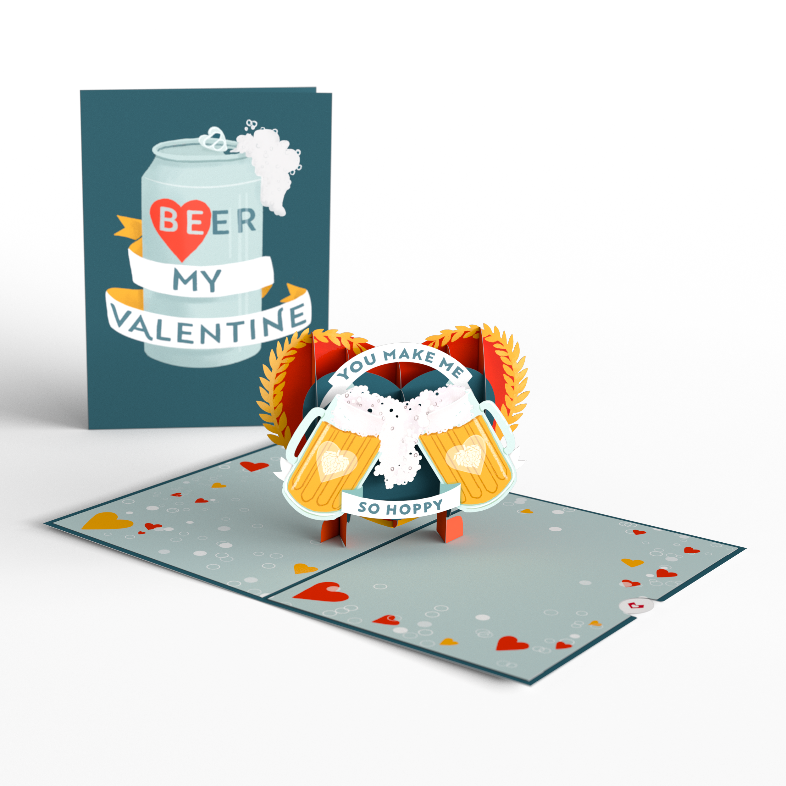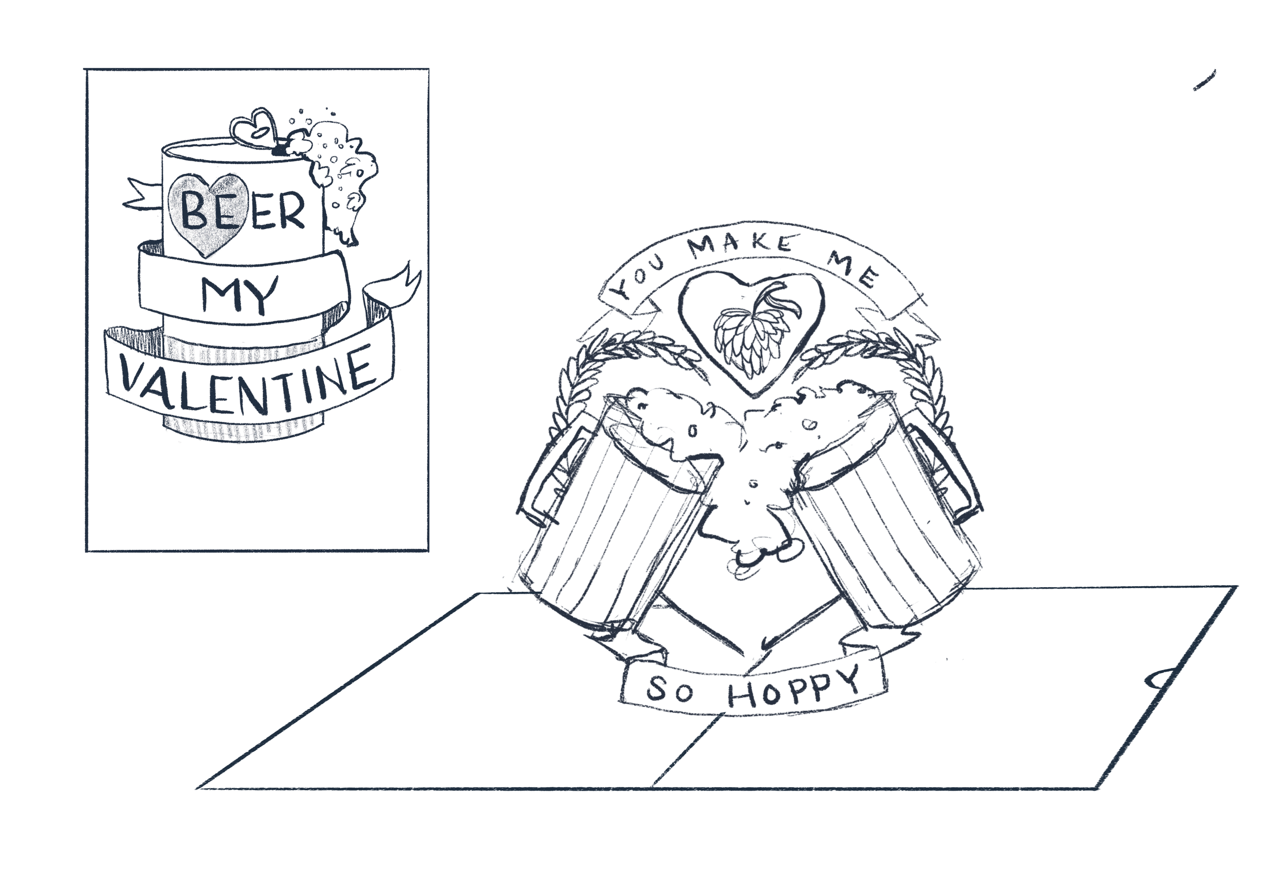 sketch final BEER MY VALENTINE valentine card created for lovepop using procreate and adobe illustrator