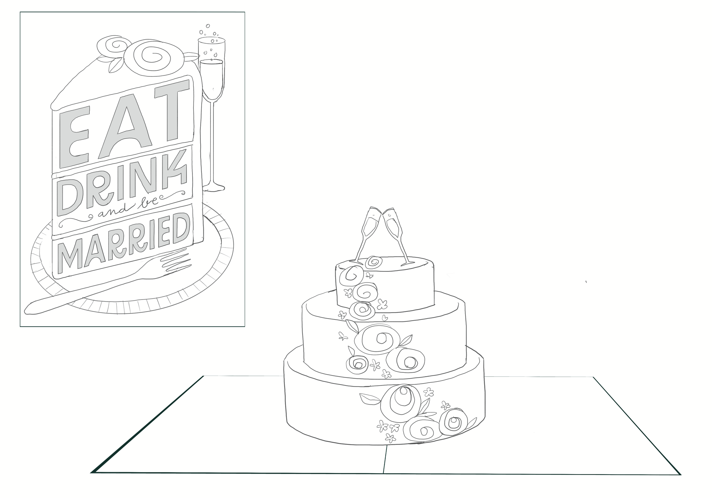 sketch final eat, drink & be married wedding card created for lovepop using procreate and adobe illustrator