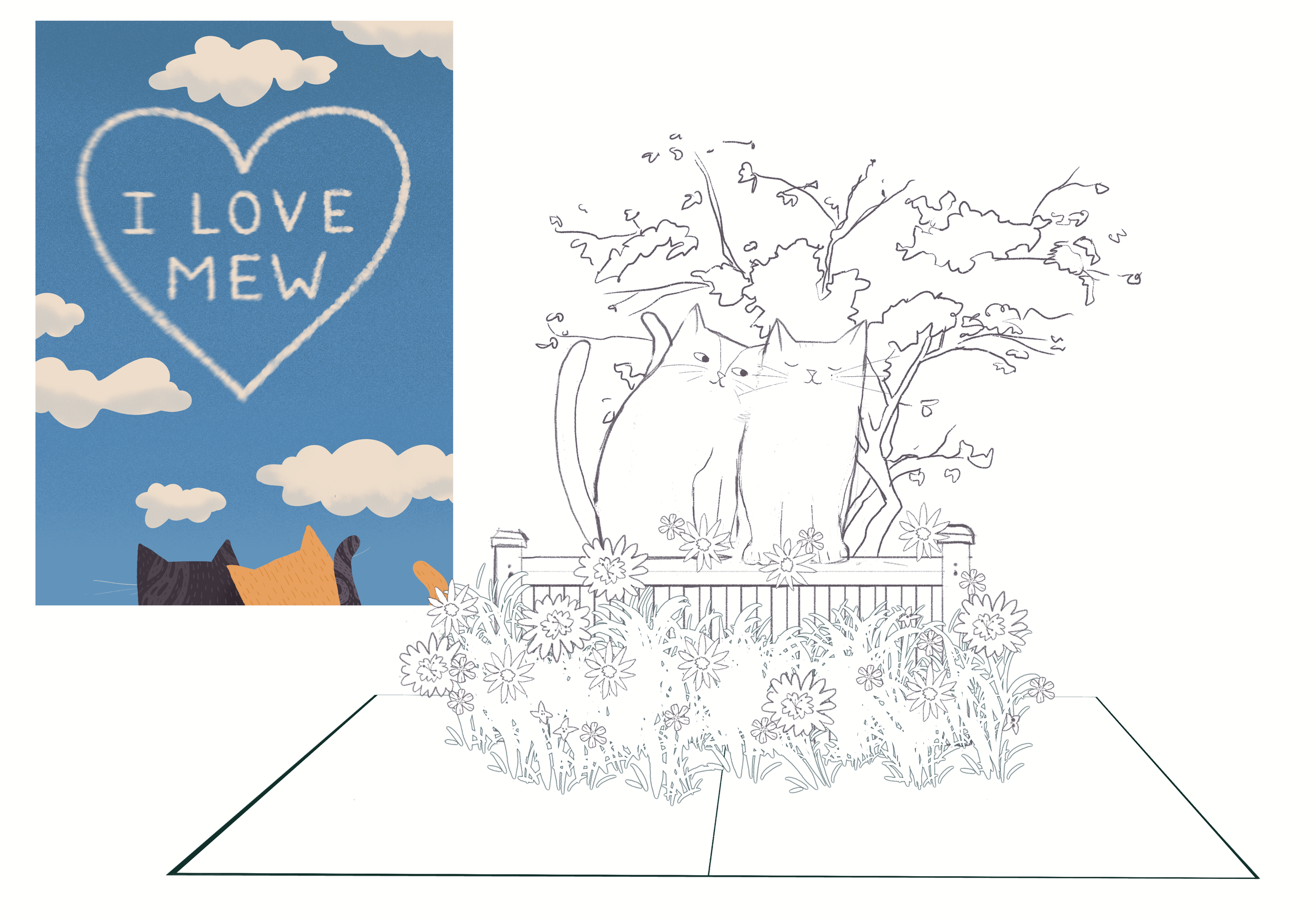 sketch final i love mew valentine/love card created for lovepop using procreate and adobe illustrator