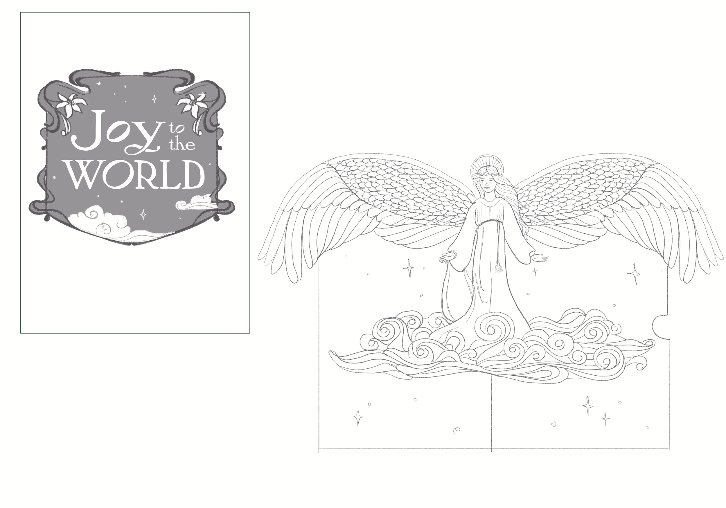sketch final joy to the world christmas card created for lovepop using procreate and adobe illustrator