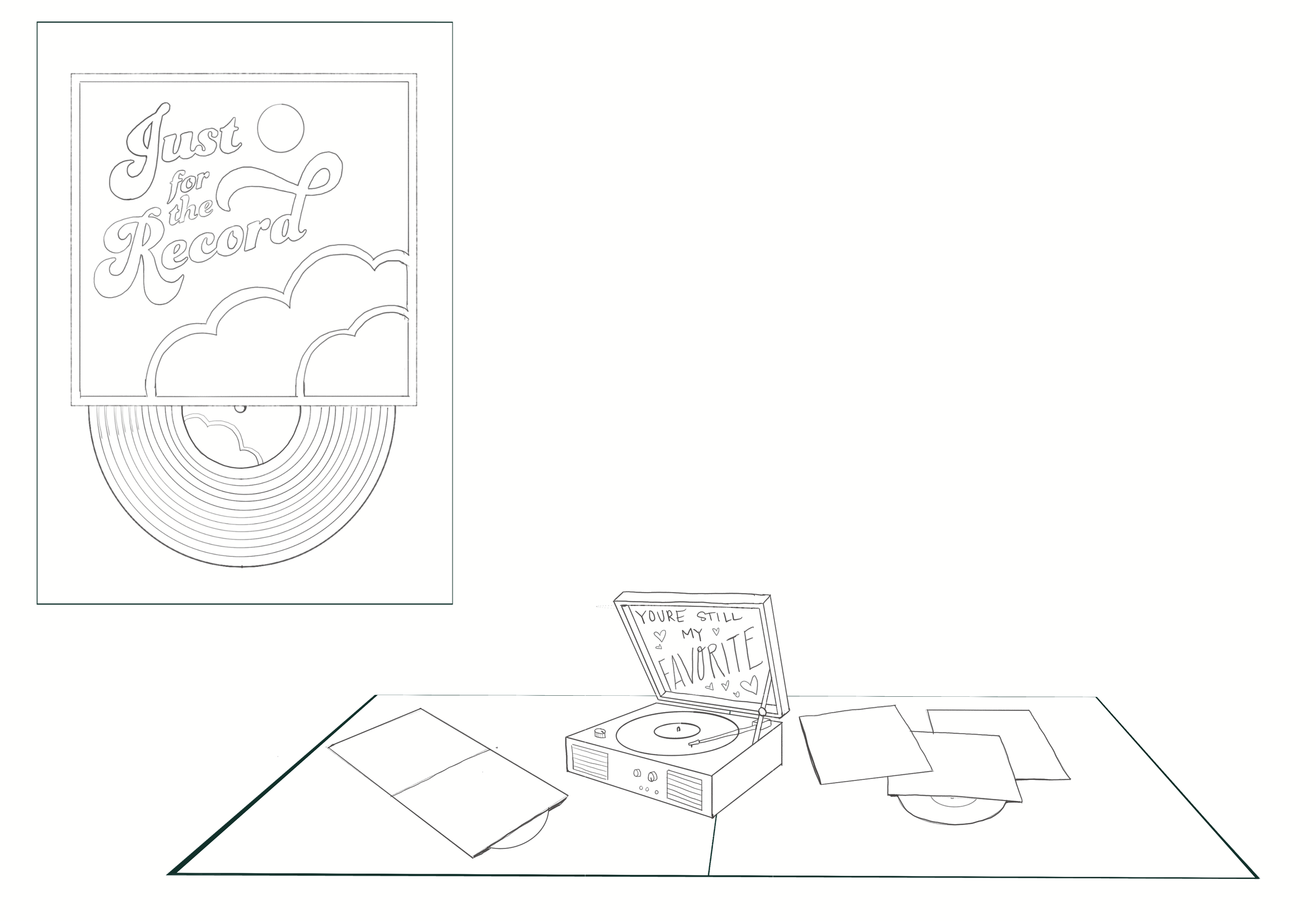 sketch final just for the record anniversary card created for lovepop using procreate and adobe illustrator