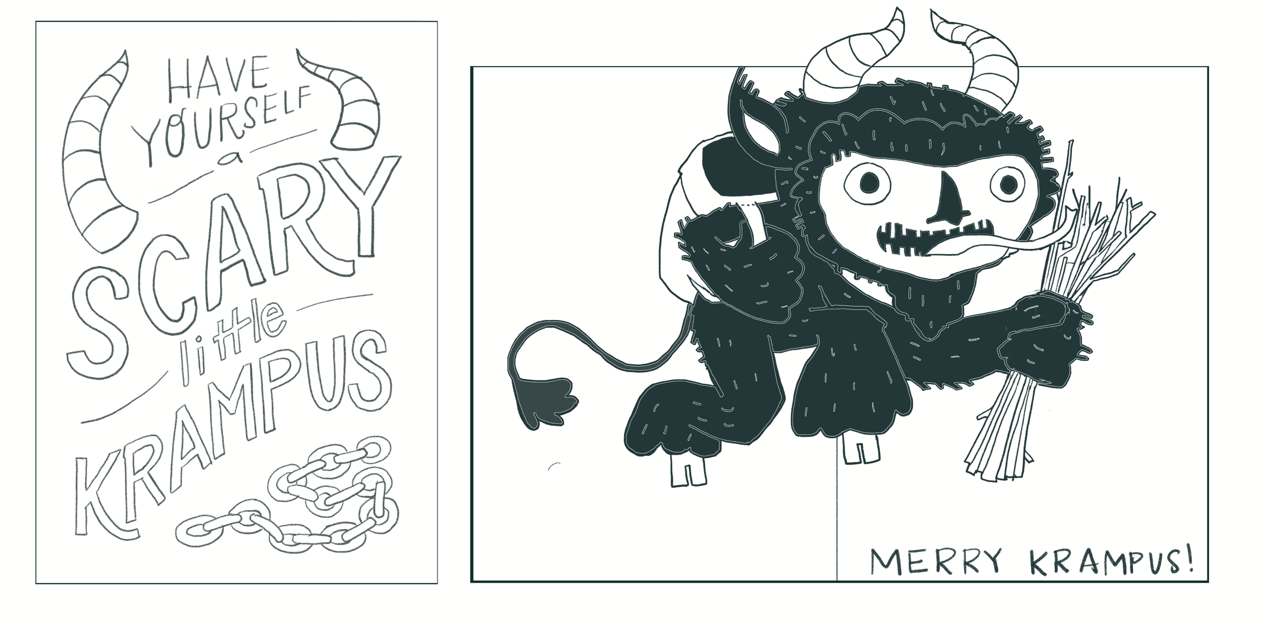 sketch final scary little krampus holiday card created for lovepop using procreate and adobe illustrator