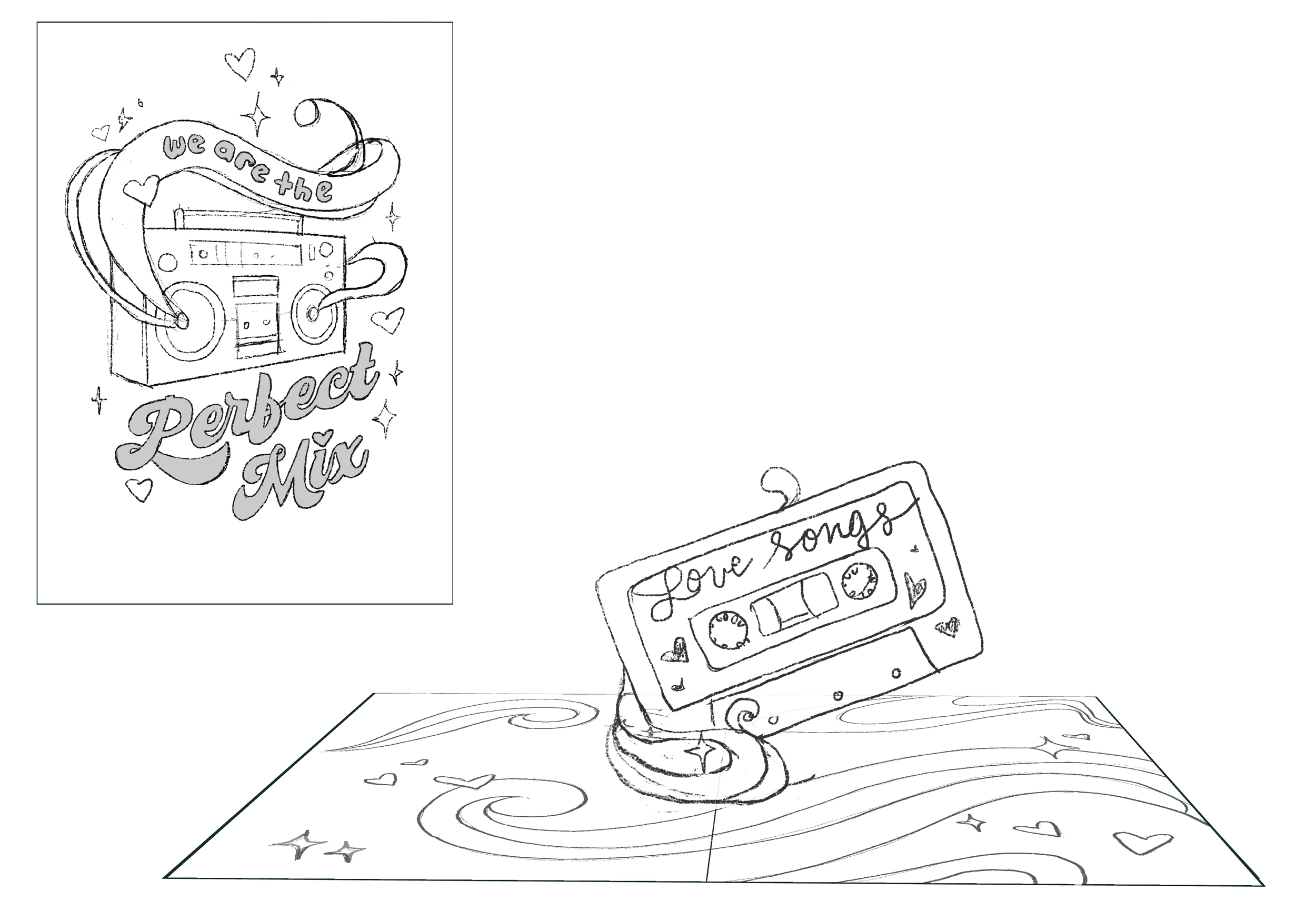 sketch final perfect mix valentine/love card created for lovepop using procreate and adobe illustrator