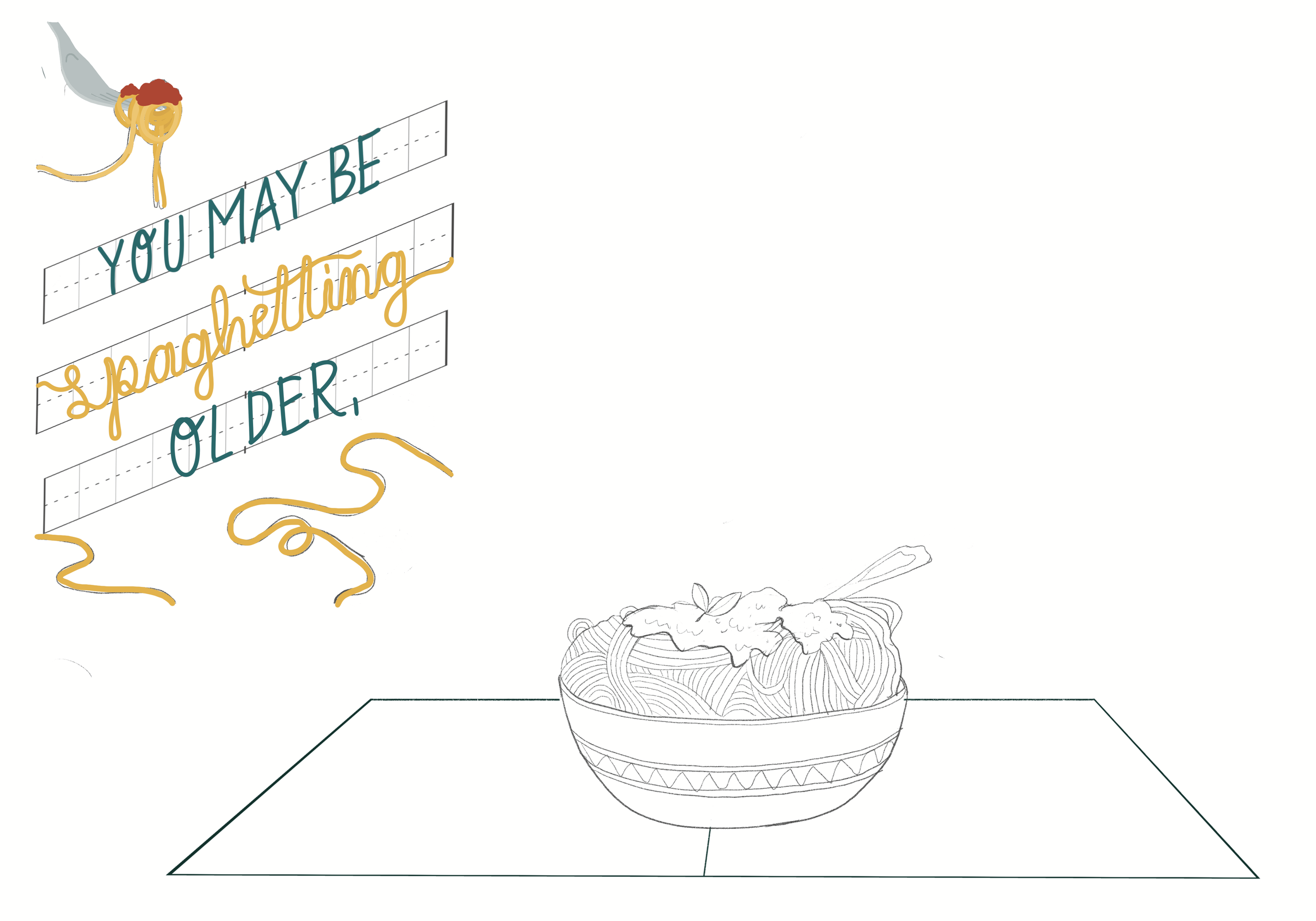 sketch final spaghetting older birthday card created for lovepop using procreate and adobe illustrator